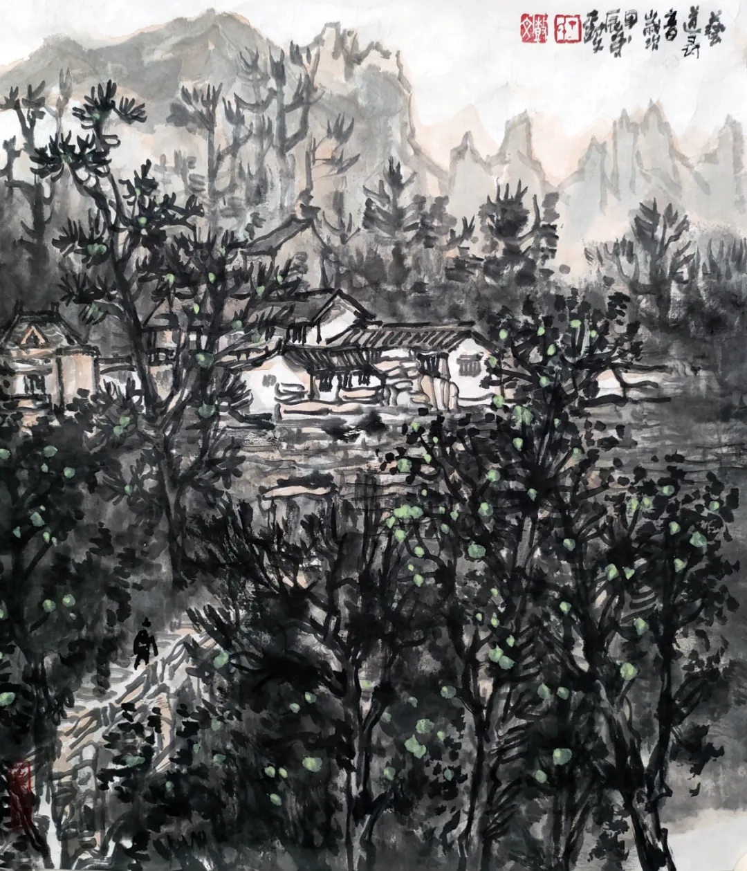 写生是学习山水画阶段性选择的重要环节。唐代张璪的"外师造化、中得心源”,师公李可染先生的"精读大自然与传统"这两本书;恩师李小可先生的“再发现”"苦行问道,造化寻声”等艺术思想,既是他们取得成就的经验总结。也为志同道合的传承者指明了学习方向。自然界不仅有厚积的人文资源,更有丰富多彩的自然资源,只要我们怀有对自然的敬畏之心,对艺术有探道笃行的态度。自然定会回馈意想不到的收获。
