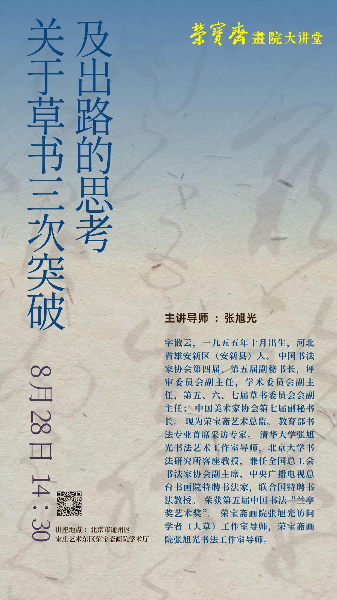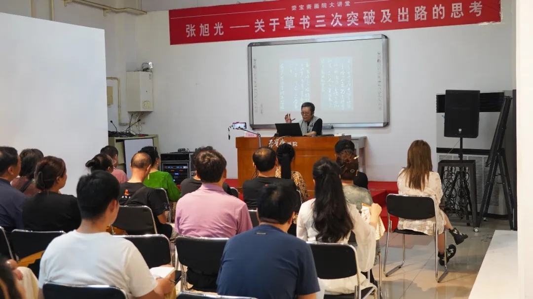 8月28日下午,著名书法家张旭光先生讲座在荣宝斋画院成功举办。张旭光先生以“关于草书三次突破及出路的思考”为题,为画院师生与社会各界书法爱好者带来了一场精彩的学术讲座 。