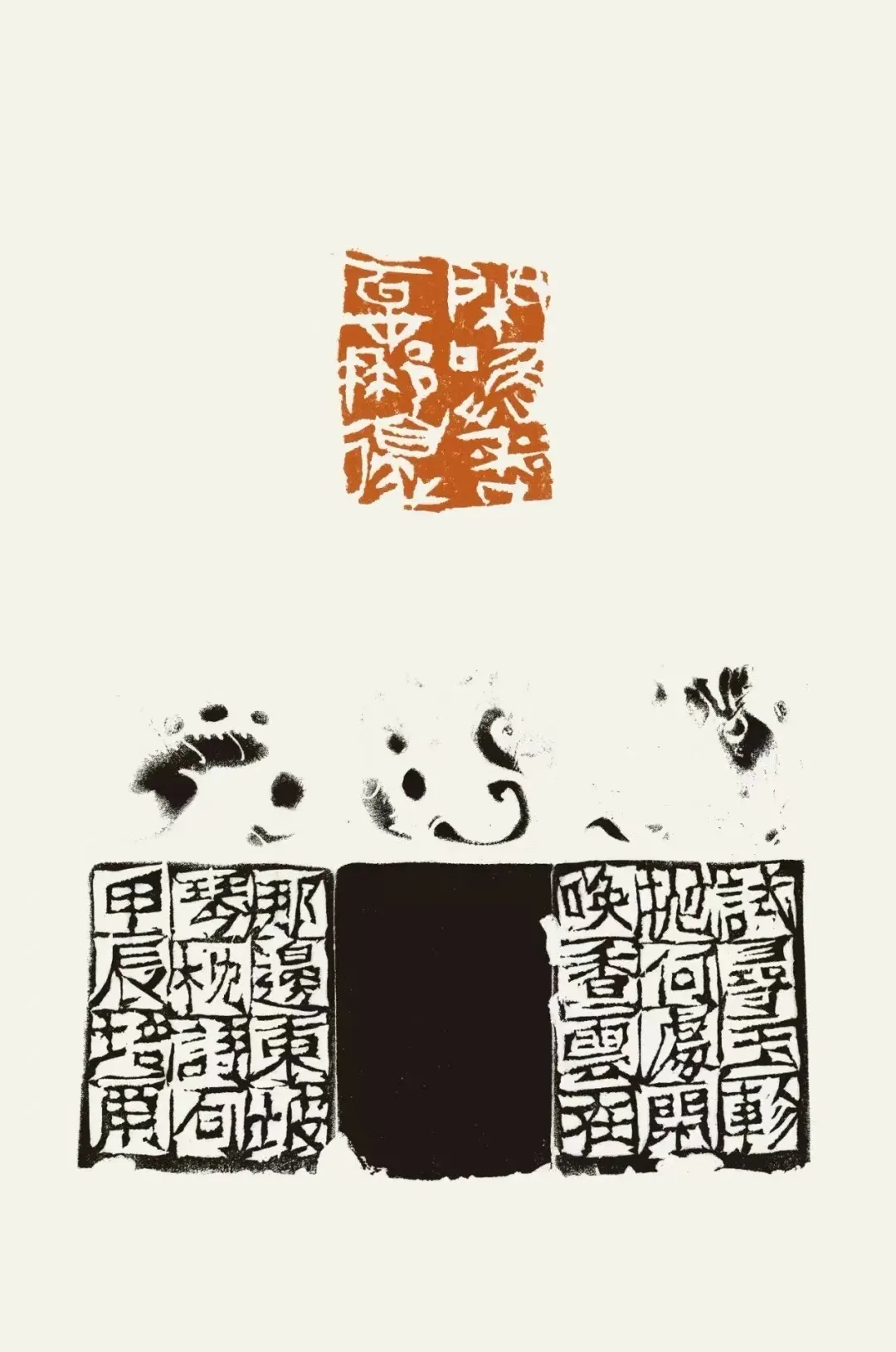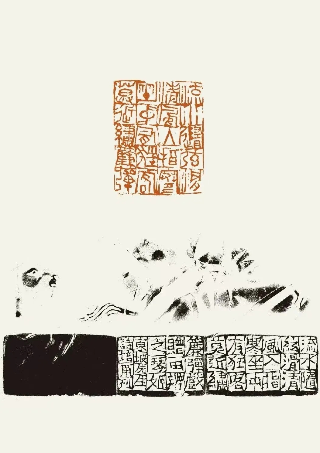 他将篆刻视为“宇宙意识”的载体,通过线条的曲直对比、空间的虚实交错,隐喻自然与历史的永恒性。例如,其代表作《江流有声,断岸千尺》以婉转弧线象征江流,锐利直线表现断岸,通过刀法与章法的对比,构建出“江流亘古、断岸沧桑”的时空意象,超越具体物象的描绘,直指形而上的精神体验。